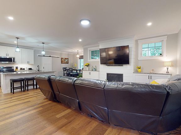 Welcome to your dream home! This stunning contemporary ranch style residence offers over 2,000 square feet of luxurious one-floor living. Cozy up by the gas fireplace, while the kitchen boasts granite countertops, stainless steel appliances, and a spacious pantry. Bathrooms feature elegant tile flooring and showers, while the primary suite indulges with a soaking tub, double vanity, and private toilet room. Convenience is key with first floor laundry and an office space. Enjoy the comfort of heat pumps and multi heating zones. The 10-foot ceilings, exposed beams, and stone veneer add a touch of sophistication. Step outside to two covered porches and a walkout basement on .47 acres, with an attached 2-car garage and lawn irrigation system. Your safety is assured with a Simpli-Safe alarm system. Your dream home awaits!