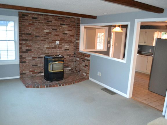 4 Bedroom home on the end of a dead end street with a one stall garage available immediately for occupancy. Features include a large private yard, wood floors, stainless steel appliances, central hot air furnace and pellet stove for heating, 1st floor laundry hookups and a heated one stall garage.