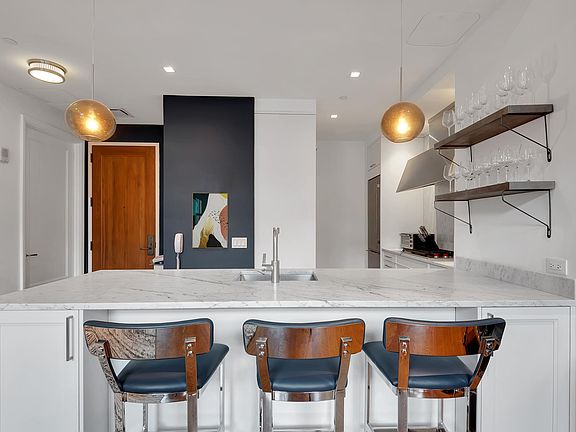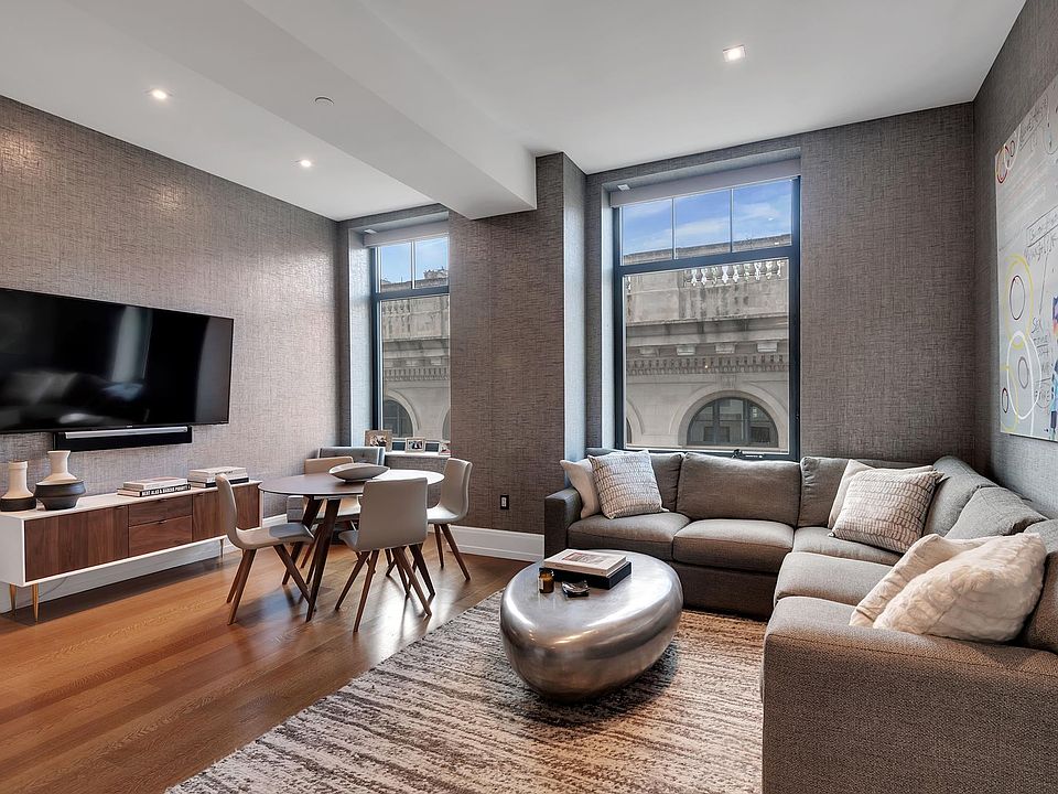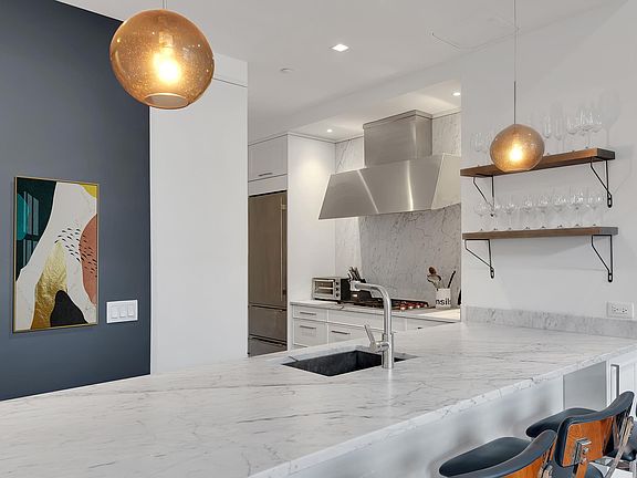 Apartment 15B is the premiere one-bedroom line at 10 Madison Square West. With 11-foot ceilings, over sized windows, and open southern exposures this generously proportioned 1,026 1 bedroom, 1.5 bathroom home offers incredible living and entertaining space. The well laid out apartment has a open L-shaped chefs kitchen providing ample kitchen and counter space without taking away from the home. The kitchen offers a Wolf range and hood, SieMatic cabinetry, Bianco Carrara marble counter tops, Subzero refrigerator with two freezer drawers, Subzero wine refrigerator, Wolf oven, Wolf built-in microwave, and a Miele dishwasher. The living space is vast and offers ample space for those needing to work at home. The spacious master suite offers ample closet space, and an en-suite bathroom with Dornbracht fixtures, carrara marble finishes, a double vanity, rainfall shower, separate deep-soaking tub, and radiant heat floors. The powder room, located just off the entry foyer, is finished in a similar aesthetic. The home features In-unit Miele washer & dryer as well.10 Madison Square West offers white-glove service through their 10,000 square feet of amenity space featuring a state of the art fitness center designed by The Wright Fit, 60-foot heated lap pool with adjacent hot tub, sauna, steam, yoga studio, Pilates studio, high energy studio, childrens playroom, and courtyard. Additional amenities include 24-hour doorman, concierge, porter, and live-in Resident Manager. 10 Madison is located in the epicenter of Flatiron with incredible access to all major subway lines as well as the best in fine dining, shopping, and boutiques.