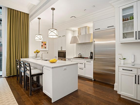 Meticulously renovated 2,021 square foot, 3-bedroom, 3.5-bathrom residence with private outdoor space at the highly coveted 10 Madison Square West.Enter through a gracious 40-ft gallery that leads into an expansive Great Room with floor-to-ceiling windows overlooking the 222 square foot private terrace. Top-tier features of this home include distinctive flooring, soaring ceilings nearly 13.5-ft in height and intricate millwork throughout. The open chef's kitchen has top-of-the-line appliances including Sub-Zero refrigerator, freezer, and wine refrigerator, Wolf microwave, oven and 4-burner gas stove with concealed hood, and Miele dishwasher. SieMatic cabinetry and Bianco Carrara marble offer a clean and elegant finish to the kitchen, complete with a breakfast bar and custom built-in cabinets.The Primary suite comprises a corner bedroom with enormous south-facing windows, 2 spacious closets, and full wall of additional custom built-in cabinets and drawers. The lavish spa-like bathroom has Kohler double vanity sinks, 6-ft soaking tub, separate stall shower, and radiant heated floors. The second bedroom currently set up as an office/den is adorned with blue lacquered walls and custom built-in bookcases and shelving. The third generously proportioned bedroom overlooks the terrace and has a fully outfitted closet and en-suite bathroom.Additional features of this home include a gorgeous powder room, coat closet and utility closet with full size washer and vented dryer. Wide plank white oak floors, pre-war style beamed ceilings, and stately moldings add rich character to every room. 10 Madison Square West was built in 1915 by the architect of the Chrysler Building William Van Alen, crafting the original iconic "Toy Building? featuring classic brick and limestone façade. The building was converted to a full-service luxury condominium in 2013. It offers the rare combination of pre-war elements with all the conveniences of a new development. Residents enjoy an exclusive 10,000 square foot club with a 60-ft heated lap pool, steam room, sauna, hot tub, yoga and Pilates studio, spa treatment room, and Fitness center by Jay Wright. In addition, there is a playroom, bike storage, private courtyard garden designed by Signe Neilsen, doorman, concierge, porter, and live-in Resident Manager. It is surrounded by high-end dining, shopping, and is steps from NoMad, Chelsea, and Gramercy. Nearby subway lines include the N/R/W/F/M/6. Pets are allowed.