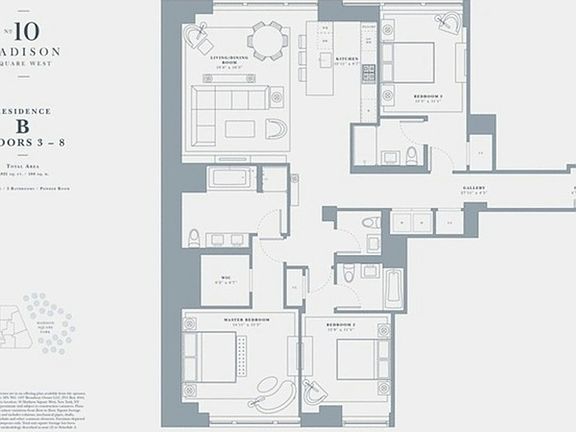 3 BR/ 3.5 BA CONDO WITH EVERY AMENITY! This stunning and pristine 3 Bedroom, 3.5 bathroom apartment affords every contemporary luxury and comfort. The modern loft space with a flexible layout is perfect for today's personal enjoyment and entertaining. The great room with beamed 11' ceilings and wide plank white oak floors is bright and expansive. The open kitchen is a beautiful blend of Bianca Carrera marble, white SieMatic cabinetry and top of the line stainless steel appliances. The lavish five-piece master bathroom is clad in Carrera marble and includes dual sinks, a soaking tub, glass enclosed shower and radiant heated floor. The second and third bathrooms and powder room are large and beautifully appointed as well with Dornbract fixtures. There is abundant custom outfitted closet space, and a dedicated hall closet with a full size Washer/Dryer.10 Madison Square West is a full-service 22 story condominium a 24/7 concierge, porter staff and live-in resident manager. The condominium offers every modern amenity, including: - A 60' heated lap pool - A Fitness Center managed by The Wright Fit - Lockers, steam rooms and sauna - Yoga and Pilates Studios - A spa with treatment rooms and a hot tub - A children's playroom - A resident's club - A garden - Bike storage and private storage units Further, 10 Madison Square West is ideally situated adjacent to Madison Square and Eately, and is surrounded by some of the best NYC restaurants as well as great public transportation.This apartment is available for sale or rent.