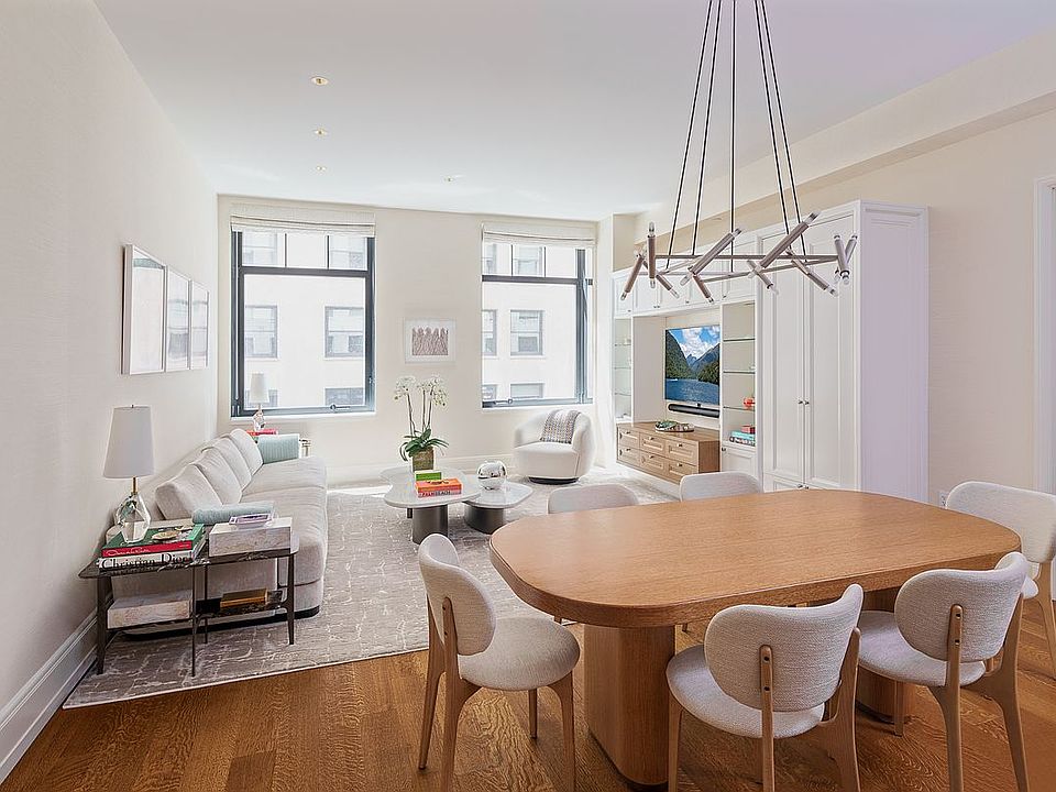 Situated in 10 Madison Square West, expertly conceived by world-renowned designer Alan Wanzenberg, this luxurious residence is 1,690 square feet with two bedrooms and two and a half bathrooms. This impeccably renovated residence features 10'9" ceilings, wide-plank oak hardwood floors, oversized Skyline windows, three-zone Mitsubishi HVAC, Nanz hardware, Dornbracht fixtures, and Leviton lighting.