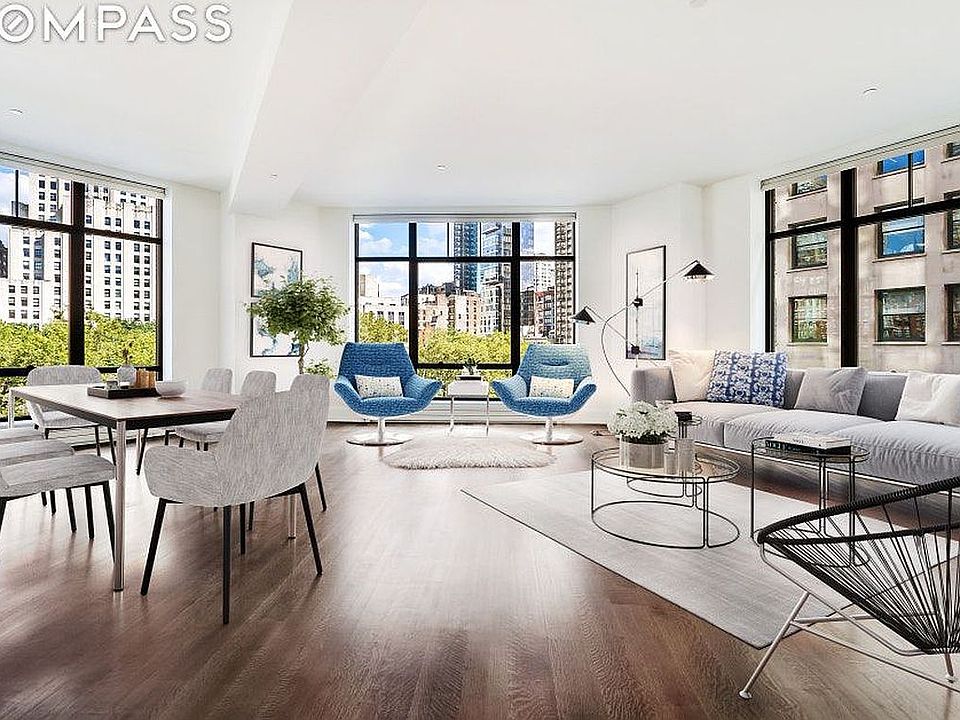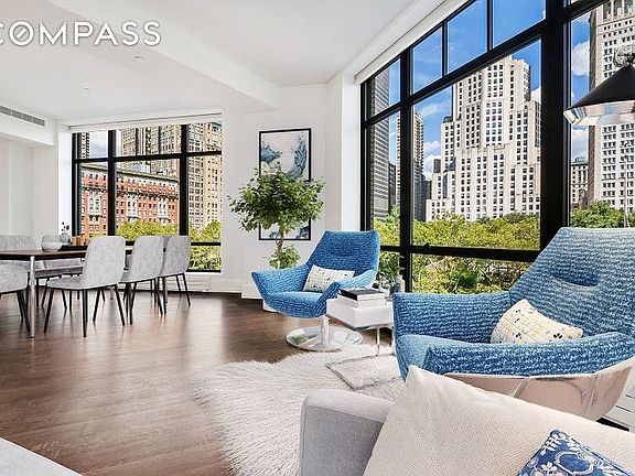 Welcome Home to Madison Square Park. Residence 5E, New and Beautifully designed 3Bedrooms with 3.5Bathrooms is distinctly breathtaking- Overlooking Madison Square Park. The location is supreme! Entering the magnificent gallery into the expansive Great Room, inspires a lifestyle of entertaining in elegance and style, while overlooking the lush lined treetops of the Park, and gazing out into Panoramic Iconic Manhattan Skyline Views. With ceilings that soar 11 feet high, this grand home is illuminated with sunlight from Sunrise to Sunset, boasting Eastern, Southern and Western exposures. The gourmet Open Chefs Kitchen is appointed with SieMatic cabinetry topped with Bianco Carrera honed marble, and is fully integrated with top-of-the-line Sub Zero, Wolf and Miele stainless steel appliances, and a center island with seating. The Master Suite is luxuriously appointed with en-suite bathroom finished in Bianco Carrara marble slab inlaid with mosaic tiles and a radiant heated floor, custom double vanity with marble slab countertop, a 6' extra deep soaking tub, and separate glass shower. The second and third bedrooms are extra spacious and both designed with en-suite baths for privacy, and finished in fine stone. A separate powder room for the convenience of your guests. This home is finely finished with several built in walk-in-closets, custom window treatments, personal washer dryer, and additional storage bin for convenience. Additional luxurious features include filtered fresh air circulation and state of the art multi-zone HVAC systems. 10 Madison Square West is staffed by a 24 hour doorman, concierge, porter, and a live-in property manager. Amenities include a 5,100sf landscaped courtyard garden, a 10,000sf club fully staffed by Wright Fit that houses a fitness center, yoga & Pilates studios, a 60' lap pool, spa treatment room, steam and sauna rooms, and a children's playroom. There is also a laundry room, and a refrigerated lobby storage for fresh food and flower deliveries. Bike storage is also available. Pets permitted. Call to reserve your private viewing!