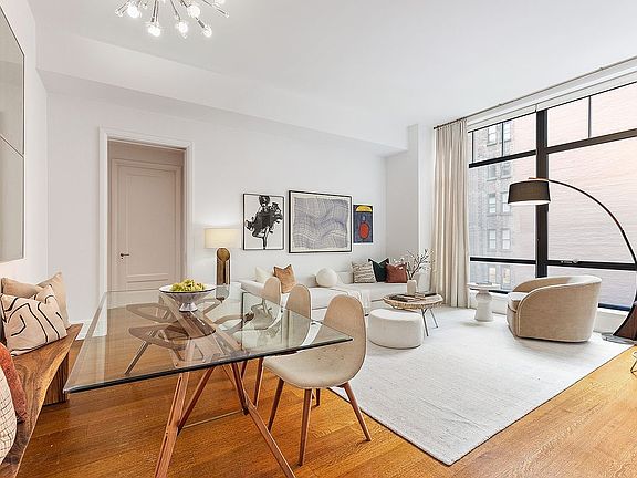 This stunning and spacious 1-bedroom, 1-bathroom home is a masterpiece of high-end design and timeless elegance. Located in one of the most coveted buildings in the heart of a highly sought-after neighborhood, Residence 7A offers the perfect blend of luxury, comfort, and convenience. With soaring 11-foot ceilings, tranquil garden views, a thoughtfully designed chef’s kitchen, and a spa-like bathroom, this residence is a true sanctuary. The gourmet kitchen is a culinary dream, featuring custom SieMatic cabinetry, Bianco Carrera marble countertops, and premium appliances, including a Sub-Zero refrigerator with two freezer drawers, a Sub-Zero wine refrigerator, a Wolf range, hood, oven, and built-in microwave, as well as a Miele dishwasher. The generously sized bedroom boasts spacious closets and oversized windows, while the luxurious bathroom is adorned with Carrera marble and equipped with NuHeat heated floors. A pocket door seamlessly connects the dressing area to the bedroom suite, offering added privacy for guests. Additional conveniences such as central air conditioning and an in-unit Miele washer/dryer elevate the home’s comfort and practicality. 10 Madison Square West offers an impressive array of amenities to enhance your lifestyle. Residents enjoy exclusive access to a 10,000-square-foot Private Residents’ Club, which includes a state-of-the-art fitness center managed by The Wright Fit, a 60-foot heated lap pool, hot tub, yoga and Pilates studios, spa treatment room, and high-energy studio. Separate men’s and women’s locker rooms are equipped with private steam rooms and saunas. The building also features a children’s playroom, bike storage, a courtyard garden, and exceptional service provided by a 24-hour doorman, concierge, porter, and live-in resident manager. Situated in the heart of Downtown Manhattan, this location offers unmatched access to Madison Square Park and a wealth of premier dining and shopping experiences. Enjoy destinations such as Eataly, Eleven Madison Park, the Edition Hotel’s Clocktower, and the original Shake Shack, all just steps away. Additional nearby favorites include Scarpetta, ABC Kitchen, ABC V, Upland, and Gramercy Tavern. With its pet-friendly policy and proximity to major subway lines, Grand Central, and Penn Station, 10 Madison Square West is perfectly positioned to offer the best of New York City living.