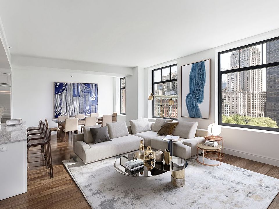 10 Madison Square West Condominium is situated in one of the most vibrant and exciting areas in Manhattan and overlooks the historic 7 acre Madison Square Park offering spectacular views of the seasonal foliage and surrounding landmark facades including the Flat Iron Building, MetLife Clock Tower and the New York Life Building. Live Life in the center of it all. Only steps away from NoMad, Flatiron, Chelsea, Union Square and some of the city's most celebrated restaurants, shops, cultural destinations and nightlife, residents will experience the best NYC has to offer. This spectacular 3 Bedrooms, 3.5 Baths, 2,347 S.F, home offers stunning direct park views from every room. Enter through a magnificent solid Cypress wood entry door into the gracious foyer that leads to a huge 25' X 15' Great Room with a contiguous open kitchen outfitted with SieMatic cabinetry topped with Bianco Carrera honed marble, fully integrated top-of-the-line Sub Zero, Wolf and Miele stainless steel appliances, a center island with seating, storage, a large stainless under-mount sink with Dornbracht faucet and recessed LED lighting. The master bedroom offers an en-suite bath finished in Bianco Carrara marble slab inlaid with mosaic tiles and a radiant heated floor, custom vanity with marble slab countertop and double under-mount sinks, recessed Robern medicine cabinets, Dornbracht fittings, 6' extra deep soaking tub and a large separate shower with frameless glass enclosure. The additional two bedrooms also offer en-suite baths with similar fixtures and finishes. There is also a separate powder room off the main entry finished with an Ocean Blue travertine floor, a custom vanity topped with a slab of Basaltina marble, under-mount sink, Dornbracht faucet and custom polished nickel light fixtures. Other apartment features include: a full size side by side washer and gas vented dryer, soaring 11' ceilings, oversized sound proof custom windows, 6" wide plank white oak floors, stately base moldings, constantly filtered fresh air circulation & state of the art multi-zone HVAC systems. Building Amenities include: a 24 hour doorman, concierge & porter, live-in property manager, 5,100 s.f. landscaped courtyard garden inspired by the neighboring Madison Square Park, a 10,000 S.F. club fully staffed by Wright Fit that houses a fitness center, yoga, pilates and high energy studios, 60' heated indoor lap pool with adjacent hot tub, spa treatment room, separate men and women's private locker rooms each offering both steam and sauna and a children's playroom. There is also a laundry room with commercial grade washers and dryers and a refrigerated lobby storage for fresh food and flower deliveries.