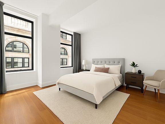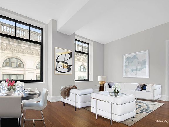 Experience refined living in one of Manhattan's most coveted buidlings 10 Madison Square West. This expansive one-bedroom, one-and-a-half-bathroom condominium sits directly on Madison Square Park, showcasing breathtaking southern views of downtown Manhattan while sunlight floods the residence through grand windows. Upon entry, a gracious foyer leads into a light-filled home with soaring 11-foot ceilings and wide-plank white oak floors throughout. Designed by Alan Wanzenberg, the interiors balance elegance and comfort. The oversized living room is ideal for entertaining, while the open, state-of-the-art Chef's Kitchen is outfitted with sleek custom SieMatic cabinetry, Bianco Carrara marble, and premium appliances by Sub-Zero, Wolf, and Miele. The serene primary suite features generous closet space, including a walk-in closet, and a spa-inspired en-suite bath complete with a double vanity, Carrara marble surfaces, Dornbracht fixtures, radiant heated floors, a deep soaking tub, and separate glass-enclosed rain shower. A stylish powder room and an in-unit Miele washer/dryer conveniently located off the entryway complete this sophisticated prewar residence. 10 Madison Square West offers the ultimate in luxury living, in the premier New York City location. Residents enjoy an exclusive, richly-appointed 10,000 square foot amenity club, including a 60-foot heated lap pool, steam room, sauna, hot tub, yoga and Pilates studio, spa treatment room, and Fitness center by Jay Wright. In addition, there is a playroom, bike storage, private courtyard garden designed by Signe Neilsen, full-time doorman, concierge, porter, and live-in Resident Manager, providing all the services you would ever need. At the crossroads of NoMad, Flatiron, Chelsea, Union Square and Lower 5th Avenue you will be in one of the most vibrant neighborhoods in Manhattan, at the heart of the city's most celebrated restaurants, shopping, cultural destinations, and transportation. Park front and serene, this apartment is the definition of personal luxury with location, views, light, elegance, amenities and space. Stroll home through Madison Square Park after enjoying an elegant evening at 11 Madison Park or any of the other top 25 Michelin rated restaurants within a 3 block radius. Day or evening, enjoy the best of Manhattan, right outside of your front door. Please note, some of the photos have been virtually staged.