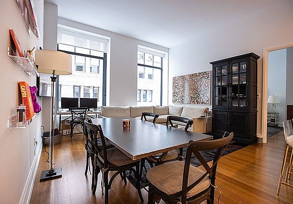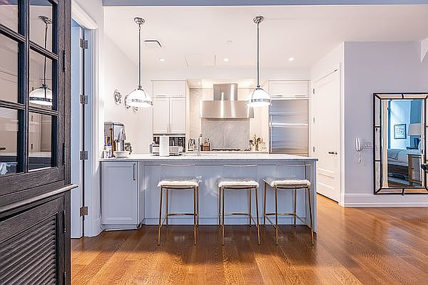 Enjoy the impeccable details of this incredible condo designed by famed architect Alan Wanzenberg. He transformed 10 Madison Square West into a one-of-a-kind luxurious oasis that redefines New York City living. Every detail in this condo was cherry picked to offer the utmost comfort and relaxed livability. Open the solid hardwood entry door and immediately take in the light and airiness of the oak floors and soaring 11-ft ceilings. A graceful foyer with a large coat closet and soothing powder room leads to an expansive, sun-soaked living and dining room with elegant floor-to-ceiling windows. Further ahead is a stunning gourmet chefs kitchen outfitted in the finest white Carrara marble, gorgeous custom Siematic cabinetry, extra large Kohler sink with garbage disposal, and state-of-the-art appliances including Wolf gas range, Wolf oven and convection oven, Sub-Zero refrigerator and wine cooler, and a ventilated hood. The Primary Suite is seamlessly tucked away on its own separate wing and features ample closet space and plenty of natural light from a wall of oversized windows. Indulge in the tremendous ensuite master bath that features white Carrara marble floors and walls, NuHeat radiant heat floors, and a coveted five-fixture set including double sinks with Dornbracht fittings, custom vanity, extra deep soaking tub, and separate glass-enclosed shower with rain shower-head. The second bedroom is generously proportioned and has its own en suite bath to compliment the apt. Luxurious amenities include 24-hr doorman and porter, 24-hr concierge, kids' playroom, private courtyard garden on the second floor, live-in resident manager, resident storage units, secured bicycle storage, and perhaps most notably: access to the exclusive Residents Club featuring a 60-ft heated lap pool, hot tub, fitness center managed by The Wright Fit, yoga and Pilates studios, spa treatment room, and locker rooms with steam and sauna. Perfectly located at the epicenter of every buzzworthy 5 star fine dining experience, all transportation, 5th Avenue shopping and world class foodie delights, next door, at Eately