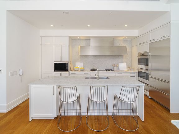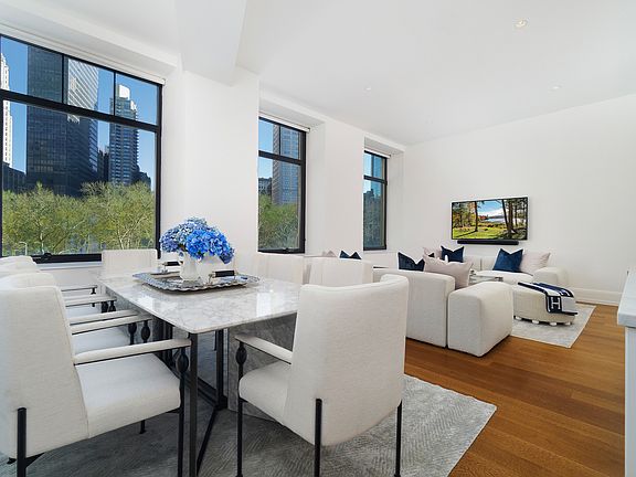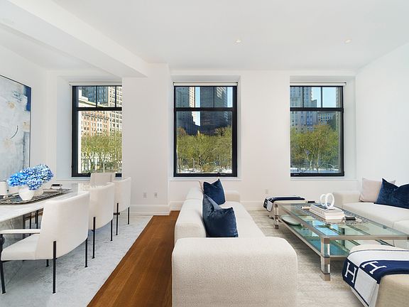 There are spectacular picturesque Madison Square Park views from every room of this luxurious three bedroom, three and a half bathroom home. Situated in 10 Madison Square West, expertly conceived by world-renowned designer Alan Wanzenberg, this impeccably renovated residence spans approximately 2,391 gross square feet. Features include 10'9'' ceilings, wide-plank oak hardwood floors, huge Skyline windows, four-zone Mitsubishi HVAC, Nanz hardware, Dornbracht fixtures and Leviton lighting. A formal entrance gallery leads to the spectacular great room that has three oversized windows with tree-lined views overlooking the park; it is ideally proportioned for both everyday living and sophisticated entertaining. There is an eat-in gourmet kitchen with custom SieMatic cabinetry and a 10'6'' breakfast bar with Bianco Carrara marble countertops providing a generous space for dining. The kitchen is equipped with top-of-the-line appliances including a Subzero refrigerator with two freezer drawers, Subzero wine refrigerator, Wolf range, Wolf oven, Wolf built-in microwave and Miele dishwasher. As for the private quarters, there is a grand master bedroom suite which faces the park with two enormous walk-in closets. The magnificent en-suite master bathroom is finished in Carrara marble and has two sinks, a walk-in shower with a rain showerhead, a separate deep soaking tub and radiant heat in the floors. There are two additional bedroom suites that overlook the park, both have en-suite renovated bathrooms, one with a shower and the other with a bathtub. A powder room, coat closet and laundry area with Maytag washer/dryer complete the residence. This premier condominium on historic Madison Square Park is ideally located where Uptown meets Downtown. There is a full-time doorman and concierge. Building amenities include a private residents club with a fitness center, 60-foot swimming pool, hot tub, yoga studio, pilates studio, spa treatment room, locker rooms with private steam rooms and saunas, playroom, courtyard garden and bicycle room.