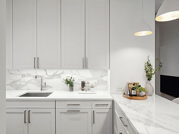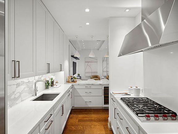Meticulously refinished, this home offers spectacular bespoke finishes unique to this unit with its redesigned bathrooms, pocket doors, and multiple custom thoughtful storage solutions. Equipped with a vented washer/dryer, central air, Lutron lighting, automated shades, and an A/V system throughout.