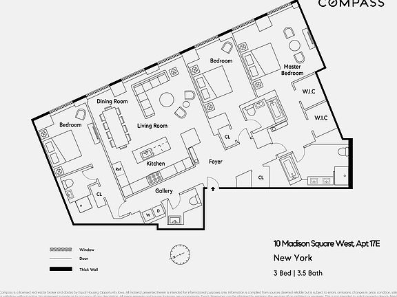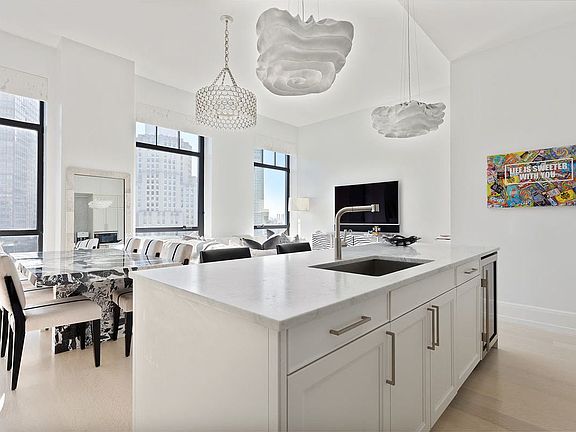 View this listing virtually by clicking on the 3D tour Parkside Perfection. This exquisite, fully customized 3 bedroom, 3.5 bathroom designer apartment is an exceptional home, standing out above the rest, without a single detail being overlooked. Perched high above the park on the 17th floor, the high floor E line is the most sought after layout at 10 Madison Square West. Every single room has direct unobstructed, open views of Madison Square Park with the city as its backdrop. Upon entering the dramatic grand foyer, you are welcomed to 13ft soaring loft ceiling heights, which is one of the many luxuries which stand out specifically on the higher floors. As you continue through to the living room, you will notice expansive oversized floor to ceiling windows, which radiate light and undeniable views of the historic Madison Square Park. The perfect winged floor plan showcases a sprawling open chef's kitchen, with classic white SieMatic cabinetry and Bianco Carrera marble with next generation appliances by Sub-Zero, Wolf, and Miele. The tremendous, master suite showcases thrilling direct park and city views with 2 custom walk-in closets, a spa inspired 5 fixture bath detailed with carrera marble featuring a custom double vanity, soaking tub, heated floors, and separate stall shower. The 2 additional bedrooms are all views over Madison Square Park, each with their own fabulous appointed en-suite baths. 10 Madison Square West offers the ultimate in premier living. Residents enjoy an exclusive 10,000 square foot club including a 60-foot heated lap pool with adjacent hot tub, yoga studio, Pilates studio, steam room, sauna, high energy studio, spa treatment room, and an outstanding gym designed by The Wright Fit. In addition, there is a children's playroom, outdoor courtyard, bike storage, full time doorman, concierge, porter, and live-in Resident Manager. With the highest quality materials and sophisticated design, this designer apartment can come furnished, partially furnished or unfurnished. Please inquire about furnished pricing. The majority of the furniture is custom and one of a kind for the space. One of the most unique offerings in the city. Pets and smoking are not permitted.