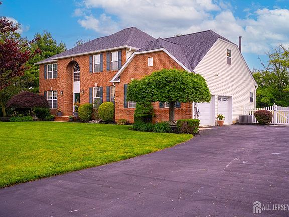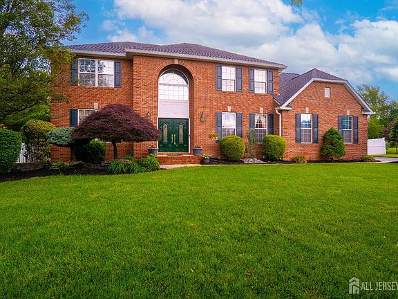 Welcome to your private oasis in a quiet 14-home cul-de-sac community, perfectly situated on a spacious three-quarter acre lot with no rear or northern neighbors. This beautifully upgraded home combines elegance, comfort, and functionality for the modern family. Inside, you'll find Brazilian cherry hardwood floors, stunning custom moldings, a dramatic two-story foyer, and a show-stopping family room with a woodburning fireplace. The chef's kitchen impresses with new quartz countertops (2024), stainless steel appliances, an oversized pantry, and a built-in wine fridge. The finished basement is a true retreat, complete with a home theater, rec space, and bar area. Upstairs, enjoy four generously sized bedrooms with new carpeting (2025), including a luxurious primary suite with dual custom closets and a spa-like bath. Step outside to a resort-style backyard featuring a stamped concrete patio, a 19,500-gallon Grecian pool, a hardtop gazebo, and endless space for entertaining, sports, and play. Additional highlights include a new roof (2023), EV charger, Smart garage doors, and Ring security system. Located just moments from Applegarth Elementary, Applegarth Road, and the NJ Turnpike, this home delivers the perfect balance of privacy, luxury, and convenience.