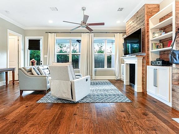 3 year young home features 4 bedrooms, 3.5 baths, open floor plan, & an office nook! Primary suite & guest suite first floor. 2 beds & 1 bath up! High ceilings throughout. Stunning kitchen, stainless appliances & pot filler. Crown, recessed lights, custom closets, built-ins, & natural light! Covered brick porches, working shutters, gas lantern! Impeccable landscaping with irrigation, subsurface drainage, lighting, turf in backyard, Tuff shed, 7ft fence, expanded driveway, generator hookup, cameras. X flood.