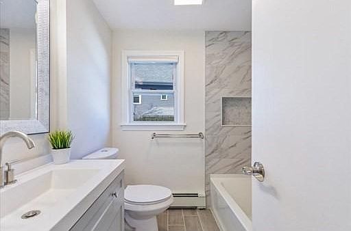 AVAILABLE NOW! Welcome Home to this BEAUTIFULLY RENOVATED 3-bedroom, 1 bath home. The NEW Eat-in-Kitchen features quartz countertops, stainless steel appliances, dishwasher, disposal, plenty of soft close cabinets/countertop space, and recessed lights. In addition, the hardwood floors have been recently refinished, completely renovated bathroom, central AC, and the washer and dryer are in the unit. Plenty of storage space. in addition to designated space in the basement, there is also covered storage under the deck and the shed. Outside you will find a large deck, and private back yard for your outdoor enjoyment. This location is a COMMUTER?S DELIGHT easy access to the Riverside T, Commuter Rail, Mass Pike, and Rt.128, minutes to Boston. Open House Sunday Feb. 27th from 11am to 1pm 284292 124