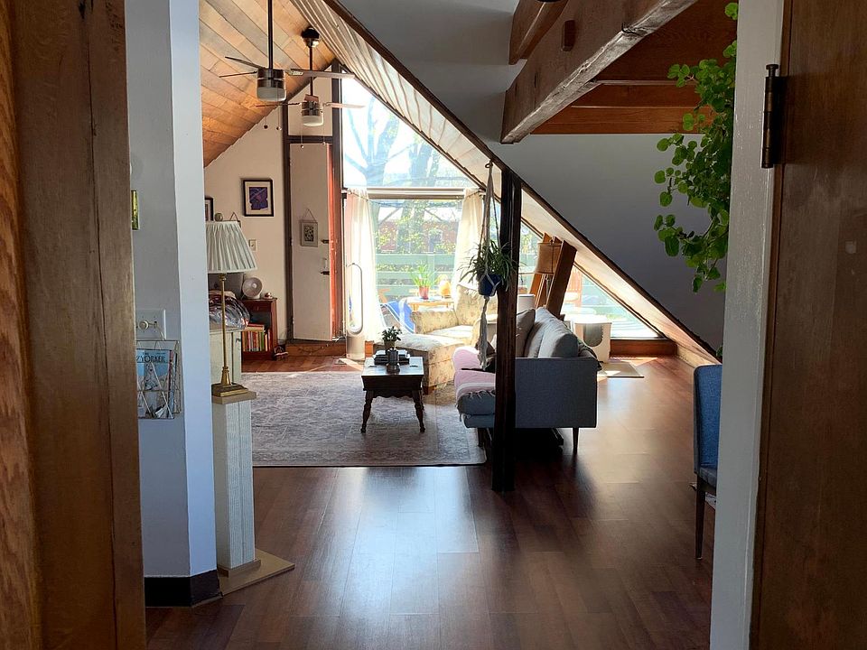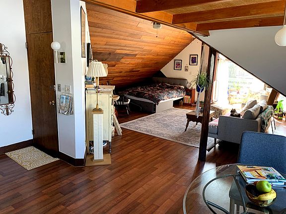 Beautiful, bright and spacious loft studio apartment with a large private deck in uptown Kingston, close to the Stockade District. Top floor of a quiet building with 3 other apartments. (Third floor walk up). It gets morning light through one floor-to-ceiling window and evening light in a second. There's a loft space that fits a queen size bed if you prefer to put it up there. Lots of closet and storage space (two huge closets and a third utility closet. There's also a basement where you can store things). Available June 1. Potentially sooner if you really want it :) **please email or contact via Zillow if interested (instead of calling) Renter pays electric/heat. One month's rent security deposit due at signing. Cats are allowed (no dogs, unfortunately). No smoking. Plenty of street parking right out front.