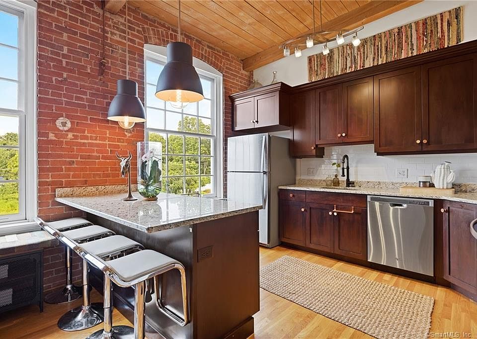 Looking for city vibes in Central Connecticut/ Look no farther than the Historic American Goods Paper Company building! This 2 bedroom & 2 full bathroom condo is located in the converted Lofts at Sherwood Falls. Adorned with all new fixtures and handpicked details, you can see how loved this home was to its only owner! This unit is uniquely located at the top of the tower on a floor all its own, the Penthouse if you will, with its own separate entrance! Get all the privacy you want with the ease of condo living. Each room features 11-foot ceilings with exposed beams, oversized windows as well as many original industrial details. The unit features windows on both sides of the living room overlooking the paper goods pond's tranquil waterfall. Open the windows and listen to the natural water feature! As you walk through the condo you will be surprised at how spacious they built each bedroom and bathroom. Additional basement storage units are available for rent. Enjoy the local coffee shops/restaurants, Coles Road brewing and Amtrack train station all within walking distance. Welcome Home !