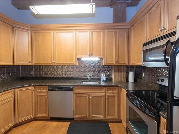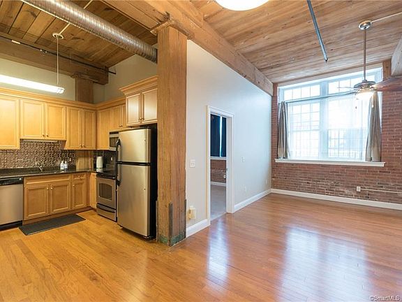 Trendy, NYC style loft building once a premiere paper company,featuring high oak beamed ceilings, brick walls and gleaming hardwood floors. Convenient location in an established residential neighborhood with PAPER GOODS pond across the way where you can go ice skating in the winter and fishing and kayaking in the summer. Walk to the quaint downtown area of KENSINGTON featuring DQ ice cream, KENSINGTON PIZZA for yummy pies, THE TAVERN for burgers and a cocktail and shop at the GOOD CAUSE GIFTS boutique! This unit is on the first floor and has some handicapped features including a special assigned parking spot (with restrictions). Bright and sunny with large double windows with transom's. Great kitchen with an abundance of cabinet space and pretty granite counter tops plus stainless steel appliances. Open concept floor plan is ideal for entertaining. Master suite has full bath with accessible shower and a large walk-in closet. Both bedrooms offer ceiling fans to catch the warm breezes in the summer. Laundry is neatly tucked away behind double doors. Guest bathroom is a full bath. Economical features include NATURAL GAS HEATING & HOT WATER and thermo pane windows. CLUBHOUSE/GYM available for resident use. 30 MINUTES TO HARTFORD AND 40 MINUTES TO NEW HAVEN. TAKE ADVANTAGE OF BERLIN'S AMTRAK STATION for commuting.