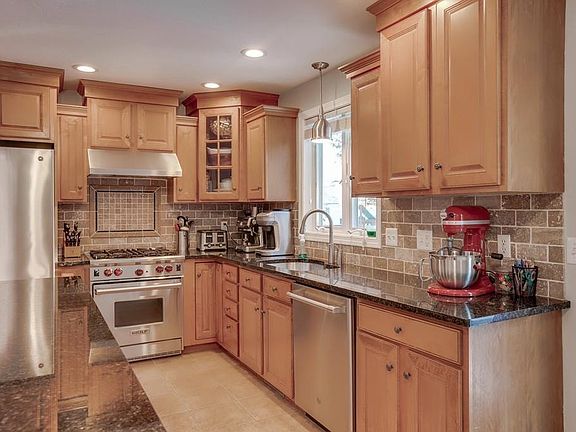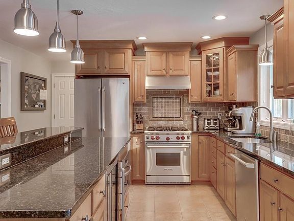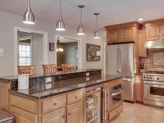 This new year means a new house for you! Located in a desirable and convenient neighborhood, this sparkling Colonial has everything on your wish list. Everyone always gathers in the kitchen, and this one is awesome! It features a great island with beverage fridge, a gas Wolf range, maple cabinets, and granite counters. We love the updated tile backsplash! The kitchen is perfectly open to the family room, which stretches from the front to back of the house and has a gas fireplace to warm you on chilly New England nights. A glass door leads from the eating area out to the newer Trex deck and the fully fenced-in yard beyond. Back inside, a spacious dining room and 1/2 bath/mudroom w/ direct entry to the 2-car garage round out the main floor. Upstairs you'll be pleased to find 4 bedrooms, all with hardwood floors. The master has a tray ceiling, walk in closet, and private bath w/ jetted tub, separate shower, and granite vanity. Gas heat, AC, Rinnai hot water. Great natural light here too!