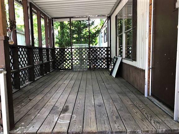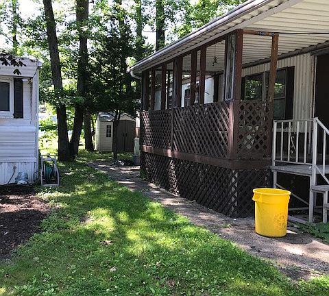 Walk up to a large covered porch perfect for sitting outside to enjoy the weather and entertaining family and friends. Then Walk into an open living room/ kitchen concept. Lots of windows to let in the beauty of natural lighting. Plenty of cabinets and storage in the kitchen. Nice size living room with newer carpeting. Walk down the hallway to a nice size first bedroom with a built-in closet. Washer and dryer located in a nook in the hallway with cabinets above. You will find an additional linen closet at the end of the hallway for your towels blankets and more. 1 full bathroom with a shower/tub combo and large vanity. Large second bedroom with a large closet and ceiling fan. Storage Shed located in the back of the yard overlooking the brook.