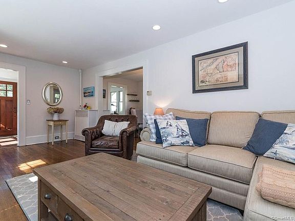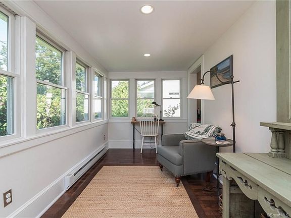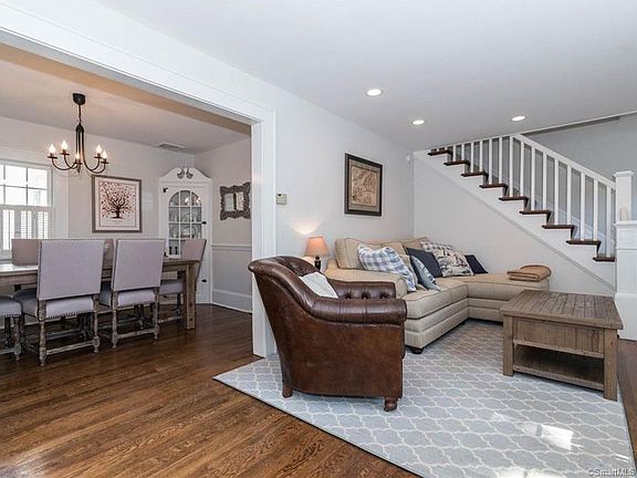 Walk to town location, new roof, new fully renovated family bathroom, newly added central air, low taxes, garage, fully fenced-in level backyard, large entertaining deck, city water and sewer, hardwood floors, wonderful neighborhood, quiet one way street! 1,624 sq ft includes 318 sq ft in finished lower level - perfect for a 4th bedroom, a playroom or an office. You can move right in to this adorable, renovated 3 bedroom colonial. First floor features a bright, sunny sunroom, spacious dining room with built-in hutch, generously sized living room, kitchen with stainless steel appliances and functional concrete countertops. All 3 bedrooms on the second floor with a quality renovated family tile bathroom. The walk-up heated/cooled attic provides good extra storage/space - a nice bonus space. Updates include: new roof and gutters, central air, newly landscaped and fenced backyard, newer windows, newer paved driveway, and much more.