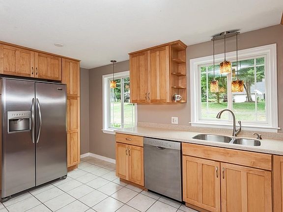 Delightful bright and updated kitchen with Wolf stainless steel gas range, Maple wood soft close cabinets, pantry, loads of counter top space and tile floor. Most rooms have hardwood floor. Newer Pella Windows. Friendly family room with fireplace, beamed cathedral ceiling, sliders to deck. Large Living room has newer bow window, opens to dining room. Beautiful finished rec room in basement offers loads of play and exercise space. Barn style shed has electricity for "man cave" and a loft for storage or more play space. 2-car attached garage. Sprinkler system. perennial gardens. Gazebo,and huge back yard to enjoy all recreational activities in and around the above ground pool.