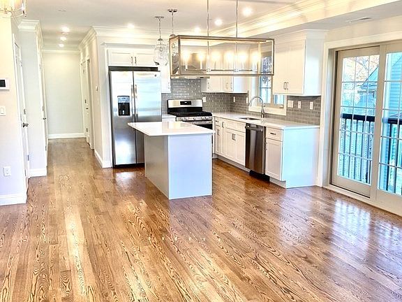 NEW ! NEW ! NEW CONSTRUCTION LUXURY RENTAL * 2 Bedrooms 2 baths in Spacious Open floor plan *. Sleek Chef's Kitchen Ideal for entertaining * Quartz counters * Hand stained wood floors * Handsome living/ dining room with Fireplace & Sun splashed glass Slider **A Personal Retreat in the Luxurious Master * walk in closet and Spa like Bath * incredible natural light throughout, loads of Closets, Immaculate basement Storage ** Convenient 2 Garage Parking Spots * Private Roof Deck * Leave you car and walk to bus & train * Easy to see this Gorgeous unit and a pleasure to show