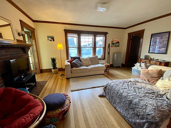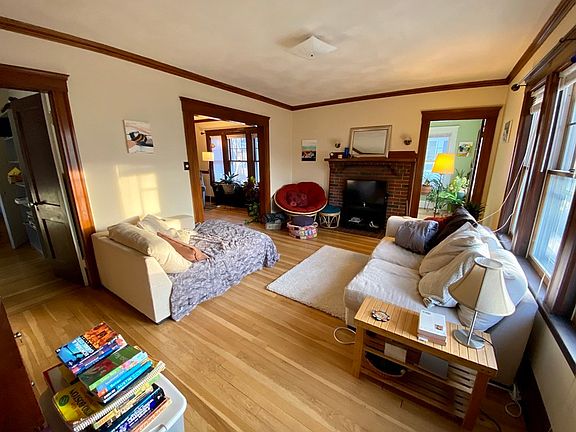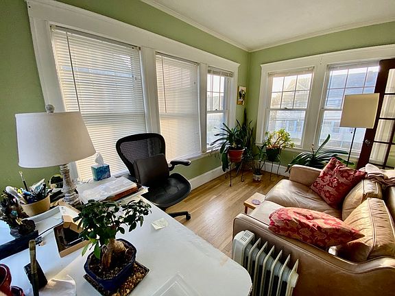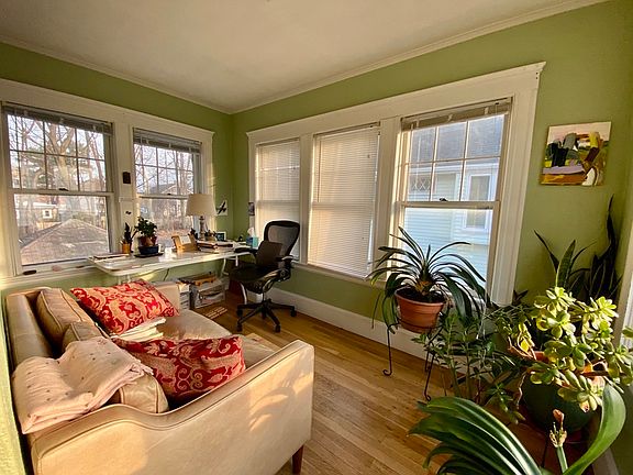 This is a must see beautiful top floor 2 bed plus office/sun room. The apartment is huge with over 1300 square feet of living space with a large living and dining room plus 2 large bedrooms. Storage possibilities are endless with a private walk up attic and shared basement. Free private laundry in the basement. Large screened porch overlooking the Minuteman Commuter Bikeway. 2 off street parking spaces included.