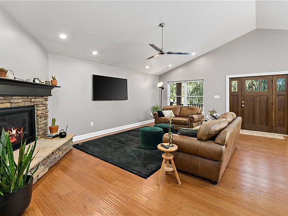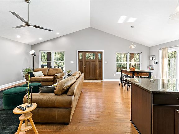 Impressive Schumacher-built ranch offering spacious bedrooms and 2.5 baths, beautifully maintained and thoughtfully upgraded throughout. Situated on your own secluded peaceful lot! Elegant open-concept living spaces feature fresh interior paint, upgraded lighting, and stylish ceiling fans. The gourmet kitchen showcases open shelving, a new sink and faucet, and newer sleek black appliances. The finished lower level is perfect for entertaining, complete with a game room, half bath, and storage area with sealed concrete floors. The luxurious primary suite offers new carpet, a custom built-in closet system, and recessed lighting. Exterior enhancements include a new garage door (2023), driveway and step leveling (2024), professional landscaping, and a proactive French drain system. Additional upgrades include a new water heater (2024) and updated downspouts. This stunning, move-in ready home blends quality craftsmanship with modern luxury in every detail.