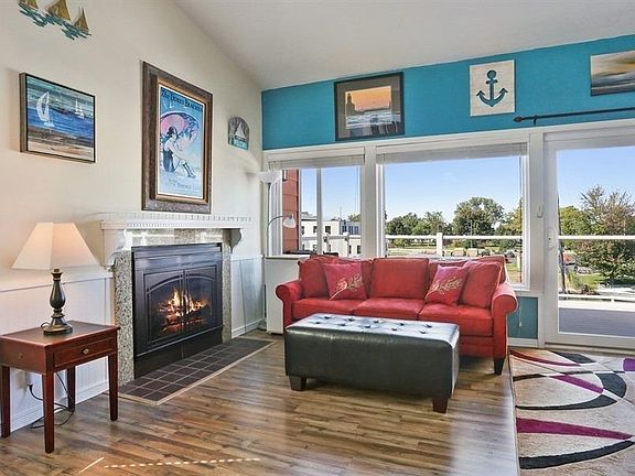 Best location in Marina Park! Great Lake Michigan views, as well as views of the harbor & lighthouse. 2 bedrooms, 2 baths with a loft that could easily be converted into a 3rd bedroom. Generous balcony and a 55' boat slip! Easy walk to beach, 5 North End restaurants, the library, and Lighthouse Mall. Community features an inground pool & tennis for residents and guests.