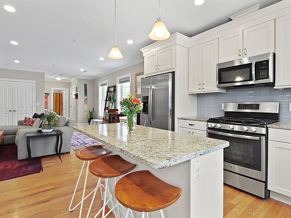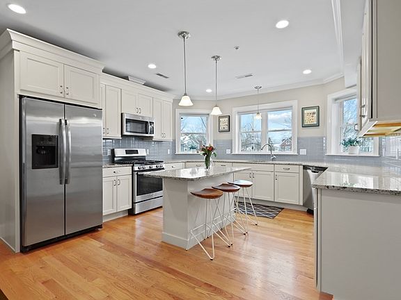 Modern, oversized upper duplex condo in the coveted Island neighborhood of Waltham. 3bd/2ba home includes a private garage plus additional driveway parking. Part of a 3-unit building that was rehabbed/converted in 2016. Main level features a show-stopping kitchen w/ island, stylish white cabinets, granite counters, and SS appliances. Open-concept kitchen, dining, and living space. A large bedroom, full bath, laundry room, and deck w/ private entrance round off this level. The second floor has a sprawling king-sized primary bedroom with generous walk-in closet and ensuite bathroom featuring double sinks and a subway-tiled glass shower. Plus another large bedroom upstairs. Private storage in basement and shared yard The kitchen overlooks the park/playground across the street. Close to nearby nature trails, The Cove/Auburndale Park, Charles River, Moody Street and so much more. Conveniently located minutes from I90, I95, D line, and 2 commuter rail lines. Offers due Monday 3/15, at 3pm.