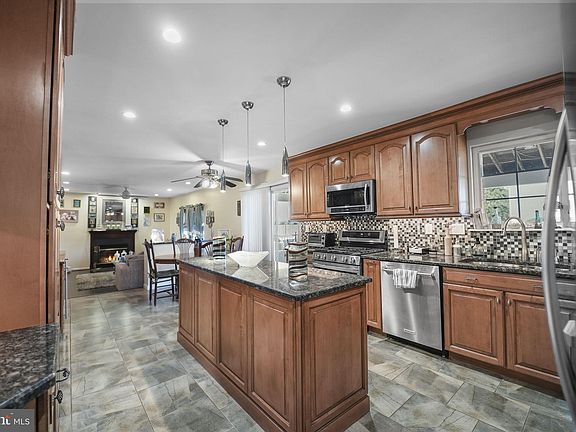 Beautiful Colonial on a half acre lot in the desirable Holloway Meadows community! This 4 bedroom, 2 full, 2 half bath home features a large, remodeled kitchen with gorgeous 42" cabinetry, stainless appliances, center island and opens to a spacious and welcoming family adorned by a wood burning fireplace with gas connection for possible conversion. Four bedrooms with two updated full baths await you on the second level, with the primary bedroom highlighted by its cathedral ceilings. Upgraded LED lighting throughout. The fully finished basement with a bar and recreational space provide ample entertaining opportunities and areas. Enjoy the outdoors on the covered patio with another bar/entertaining space. Abundant landscape lighting adds to the curb appeal of the home in the evening hours. This fantastic home is complete with a 2 car garage and situated on a corner lot of a cul-de-sac. Start packing!