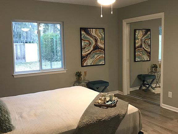 Completely updated open plan 2 bedroom and 2 full bath home with 2 car garage in the Village with community pool. Freshly painted throughout with new vinyl plank flooring (no carpet!), granite counter tops, breakfast bar and stainless steel appliances in kitchen and washer & dryer included. Tons of closet space and en suite with garden tub in master. Large privacy fenced back yard with patio. Community pool access included in rent. Close to St Joseph's hospital, schools, Georgia Southern, HAAF and shopping. 5 minutes to Truman Pkwy. One pet allowed with $300 pet fee. Available now!