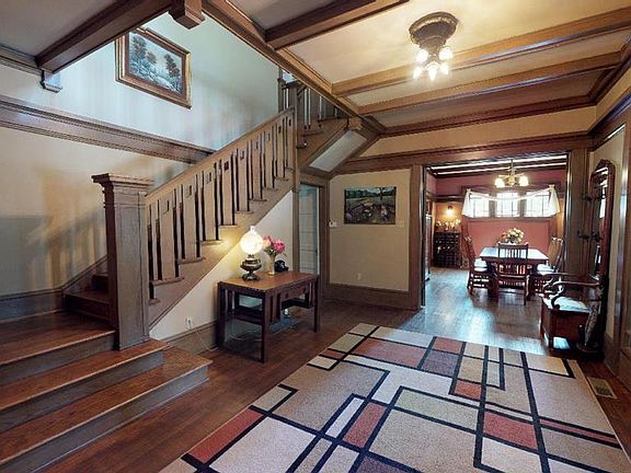 Frank Loyd Wright inspired Charles Lewis designed Prairie style home built in 1913 in the Historic Maywood Sub-Division. This home features a 12X16 foyer with beautiful hardwood floors through most of the home. Formal dining room, large living room with fireplace and family room for entertaining. Hickory kitchen includes a butlers pantry and breakfast nook. Upstairs you will find 5 specious bedrooms with large master suite. Nice size walk in linen closet in the hall with lots of built in storage. Home includes 2 furnaces and 2 central air units. The upstairs furnace and central air were replaced in 2018. The roof is currently being replaced and all of the soffits are being painted. New sewer drainage to the street was done in 2015. The basement was also waterproofed in 2015 and has a lifetime guarantee with a triple sump pump installed. All windows have been re-glazed, re-caulked, scraped and painted. Many more updates have been done through the years on this home.