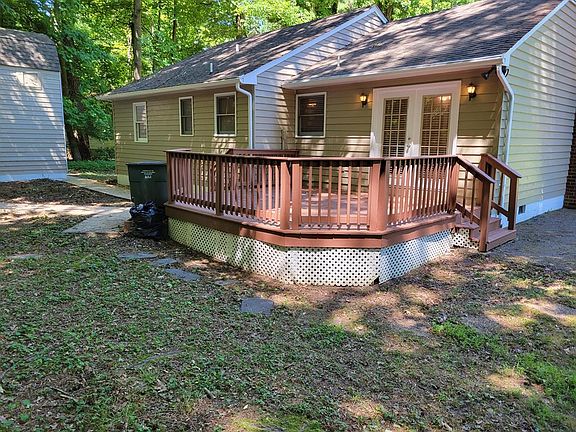 Large charming rancher home in a lovely waterfront community, rich with amenities and activity. This 3 bedroom, one and half bath home is suited on a large corner double lot with beautiful oaks trees and an outdoor shed that has two levels. Interior of house has hardwood floors, a great kitchen with all new appliances, hardwood floors, plenty of counter space, the living room has a wood burning fireplace. The large deck looks over a partially wooded lot and a back yard is perfect for entertaining. Upgrades include new deck, new French door leading to the deck has been replaced and added a dehumidifier in the crawl space. The private community dock and boat ramp is a short golf cart ride and a short boat ride to the Chesapeake Bay for great fishing. There is plenty of activity with nature trails, camping area, and a beachfront picnic area complete with tables, volleyball, and swings.