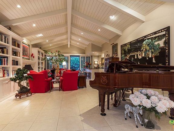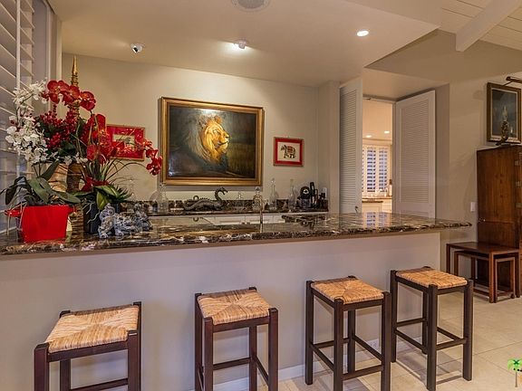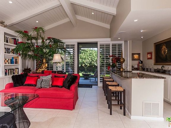 Fabulous corner lot, upgraded to the nines, Seller has spared no expense including Solar Panels on the roof already paid for and approved by the H.O.A. This is a home with very sophisticated taste. Kitchen completely renovated. Custom built in Banquette, Miele Dishwasher, Gaggneau Double Oven with Convection, Sub-Zero full size fridge, Sub-Zero double freezer drawers, Thermador instant electric countertop stove with press button vent, Granite through out with bull nose corners, including Kitchen, Bar, and Guest Bath, Porcelian tile floors, Carpet in Guest Bedroom & Den. Newer A/C and Furnace units with energy efficient thermostats. Custom Fire Place Mantle, Book Cases and Built in Cabinets in Living Room. Custom Marble Floor and Walk in shower in Master Bath. Ceiling Fans, Plantation Shutters throughout, Water Softener, Custom California Closet in Master. Separate A/C in Master Bedroom with remote. Custom built in storage in garage. Custom lighting, Fishpond and Waterfall in Back Yar