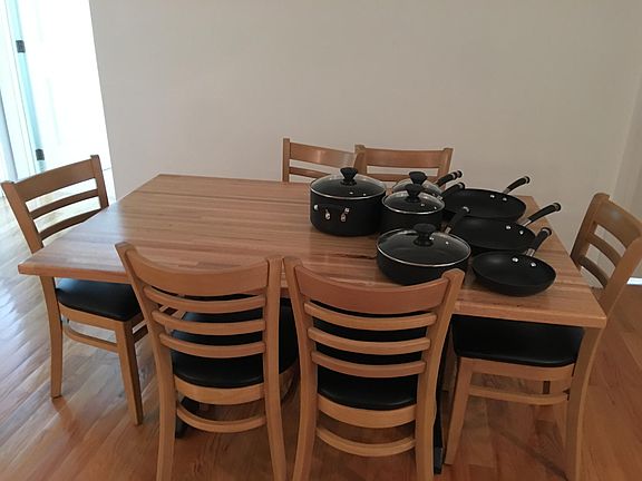- Kitchen with utensils, table settings, glasses, mugs, mixer, etc.