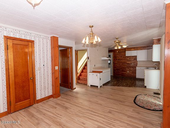 Great opportunity to own a well maintained home in the city of Gloversville! This 1 bedroom (on main level) 1.5 bath home also has a full finished attic to use for your liking. Newer roof and replacement windows. Beautiful original wood molding, interior wood doors, sliding door to back slate patio and wood feature wall in kitchen. Full heated basement with gas stove, workshop, walkout access and additional half bath. The grassy backyard is spacious and level. 1 car attached garage. 0.4 miles from hospital, close to shopping.