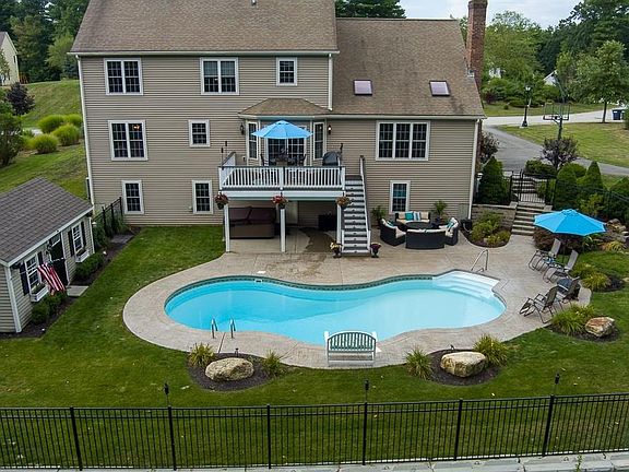 This gem won't last! Like-new 4 Bed, 2.5 bath Colonial is meticulous from top to bottom; inside & out. Freshly painted interior, gleaming hardwoods through most of home, grand foyer, 1st floor home office w/ french doors, formal living & dining combo makes hosting gatherings & working from home a breeze. The upgraded kitchen offers granite countertops, SS appliances, island, wine chiller, walk in pantry, large eat in dining area & open concept cathedral family room w/ gas FP. Upstairs are 4 bedrooms including a master suite w/ vaulted ceilings, walk in closet, & bonus room that could offer a 2nd home office, gym, den etc.. Master bath w/ dual sinks, jacuzzi soaking tub & shower let you wash your daily cares away. Huge, walk out basement could add additional living space. Step outside & marvel at the outdoor oasis complete w/ deck overlooking a private patio area, lush landscaping & heated inground salt water pool w/ pool house/shed combo. Great Mass Pike, RT 84 & RT 20 commuter access