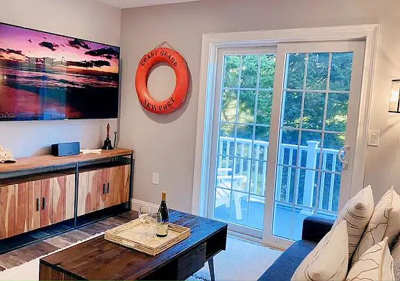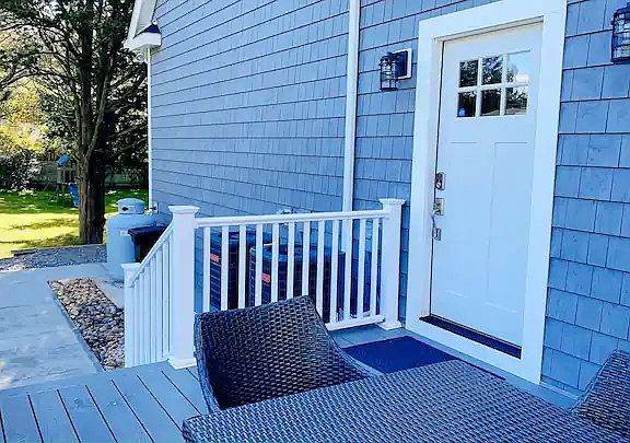 Welcome! This home is right outside Historic Downtown Mystic. Second floor unit, with balcony and washer and dyer. This modern apartment features a fully equipped high end kitchen. Sleeps up to 2 adults with queen bed, with additional room for a pack and play (baby items are included). Free street parking and shared backyard space, with a large deck containing a grill, full dining table, and seating areas.