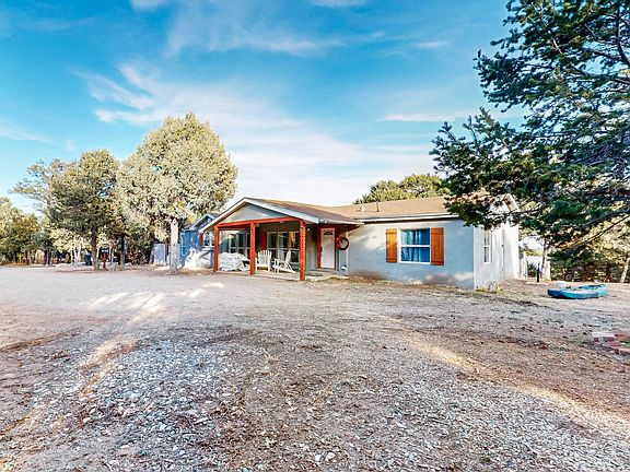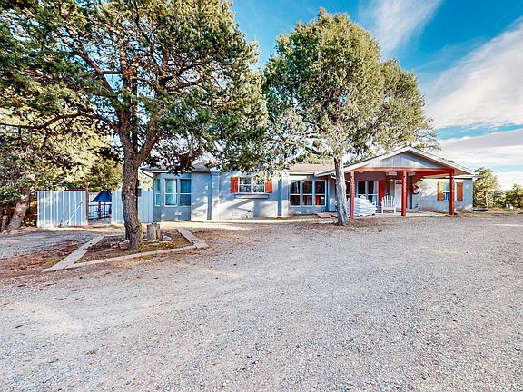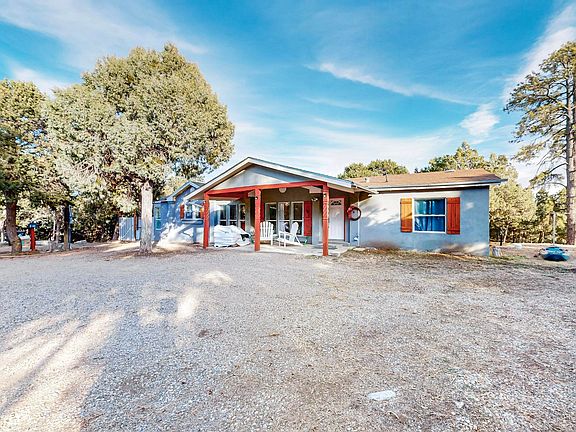 Escape to your private mountain paradise! This beautiful mountain home sits on an expansive 2.79 acres of wooded/meadowed land. Boasting 1,837 square feet of cozy living space, this residence features an open floor plan that seamlessly blends comfort and style. You'll love the spacious living area, perfect for gathering with family and friends, and a large open kitchen that's perfect for family gatherings. Imagine enjoying your morning coffee on your covered patio surrounded by nature! For the car enthusiast or hobbyist, this property features an incredible 10-car garage, providing ample space for all your vehicles, toys, and projects. Enjoy the serenity of mountain living while just a short drive to ABQ. Don't miss your chance to own this unique property!