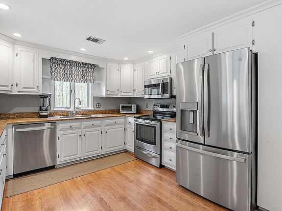 Welcome to this wonderfully updated 3 bedroom, 2 bathroom ranch located in desirable Atkinson neighborhood. The fully applianced stainless steel kitchen features granite counters, recessed lights, plenty of cabinets and a dining area. The living room has a beautiful picture window and a wood burning fireplace. Primary bedroom with private bathroom, Jacuzzi tub and tile flooring. All three bedrooms are very nicely sized and have closet organizers. There is also a 3/4 bathroom with a tiled shower. The main level is completed by a stunning sunroom with 4 skylights and Anderson sliders, enjoy relaxing while overlooking the backyard that abuts approximately 30 acres of the town forest. The lower level has very spacious family room with a Vermont Casting gas stove and a newer slider that opens to a patio. Central air conditioning, 200 amp electric service, generator ready and 2 car garage. This property features 2 year young high efficiency Navien combination tankless boiler for heat and hot water fueled by propane. New vinyl siding, new roof, new walkway with granite steps and driveway repaved all within the last 5 years. Fantastic yard with 2 sheds and patio. Great location with Woodlock recreation park and the Atkinson Country Club both nearby. Showings begin at the open house on Friday, May 10th from 4:30pm to 6:30pm. There will also be open houses on Saturday, May 11th 12:00pm to 2:00pm and Sunday, May 12th 12:00pm to 1:30pm.