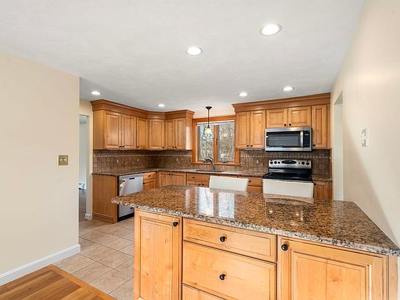 This charming home features 3 bedrooms with 2 full baths, including a spacious first-floor primary suite. A lovely kitchen that offers maple cabinets, granite countertops, & stainless-steel appliances, with a breakfast island that opens to the formal dining room perfect for meals. The cozy living room has a nice fireplace perfect for relaxing. While the spacious great room, with its vaulted beadboard ceilings & natural sunlight, is ideal for family or entertaining guests with beautiful hardwood floors that flow through the home, adding warmth & character. The walk-out basement is a fantastic opportunity, with plenty of space to finish for additional living space, an extra bedroom or in-law. The beautiful backyard has a composite deck, which is perfect for grilling & enjoying the outdoors. The driveway & 2-car garage provide ample space for vehicles & storage. Situated on a corner lot, offering space & privacy. Conveniently close to the Woburn commuter rail, highways & shopping.