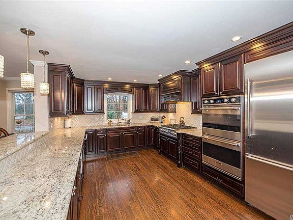 Located on a cul-de-sac, this luxurious & updated colonial checks all the boxes! Perfect for entertaining, the amazing open floor plan boasts hardwood floors throughout, a chefs kitchen w viking stove top and ss appliances and opens right up to a country club yard. The sunken den has a wood burning fireplace, skylights and a newly renovated powder room. The master BR en-suite has a private bathroom and walk-in closet. Three additional spacious bedrooms and hall bath complete the upstairs. Newly renovated basement with full bath offers amazing additional living space. Country club yard with IG heated pool, new pavers and professional landscaping. Must see!