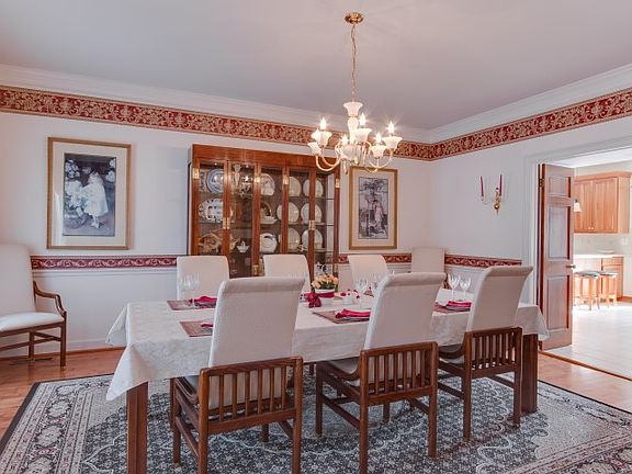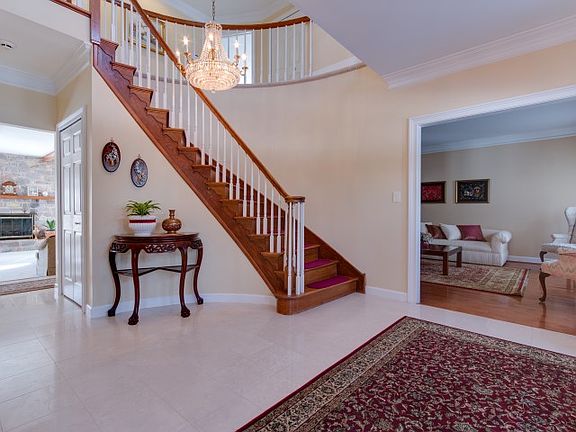 Priced to Sell! Welcome home to this five bedroom, four full bath, Colonial nestled on a pristine 2.9 acre lot in The Ridings. Boasting more than 3,500 square feet, features a two-story foyer with a curved staircase accessing the formal living room and dining room with hardwood flooring. The kitchen with breakfast room features cherry cabinets, avonite counters, tile back splash, breakfast bar and spacious breakfast area with wet bar and French doors overlooking the covered patio, brick terrace and in-ground pool. A spacious family room features a stone fireplace with wood mantel, exposed wood beams and French doors leading to the picturesque yard. For guests, a first floor bedroom/office is available with full bath, built-ins and closet. Upstairs you'll find a gorgeous master bedroom suite with luxurious bath, walk-in closet, loft or library in addition to 3 large bedrooms with two sharing a full bath and the fourth bedroom princess suite with a private bath. The finished basement has outside entrance and is great for entertainment plus a three car garage is well equipped for additional storage. New furnace just installed. Convenient to shopping, schools and parks. Come take a look - you will not be disappointed!!