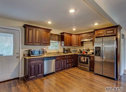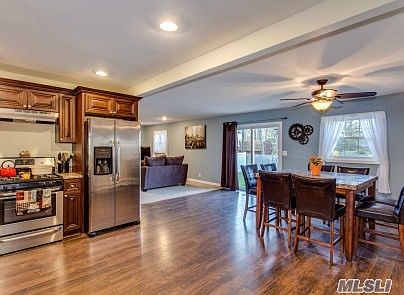 Spacious And Absolutely Immaculate 4 Bedroom Ranch With Front Porch. Huge Eat In Kitchen Opens To A Patio And A Fenced Backyard. Hall Closets And Full Basement Provide Space For Extra Storage. Home Features An Alarm System, 1 Year Old Cesspool, Solar Panels And A 4 Car Garage Accessible Through The Basement! Move In Condition.