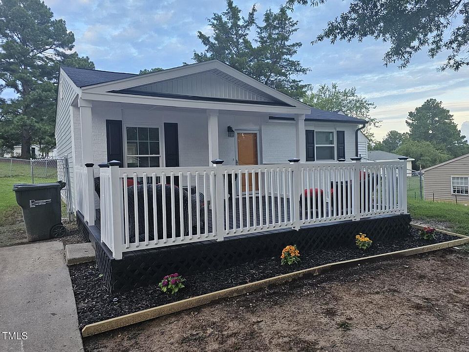 This beautiful starter home has been fully remodeled from the inside out. New roof, laminate flooring, paint (inside and outside), HVAC unit, windows, siding, granite countertops, 16 x 18 porch, doors, and light fixtures. There's also a storage shed that already has electricity. This home is located near Brier Creek and lots of shopping and food areas. Come and let this gem be yours today.
