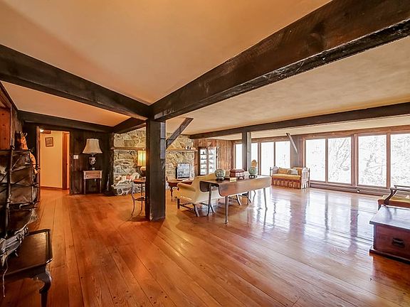 Never seen before, a phenomenal opportunity to own a piece of Milford's History! This unique colonial was once a prosperous working Mill. Converted into a residence in the late 1960's, this home offers 3,800+ sq/ft of finished living space and over 4,000 unfinished sq/ft to bring your visions to life! Set on 2+ acres, this extraordinary property sits on Rose's Mill Pond & boasts a stunning waterfall & peaceful flowing river. Explore the grounds to find the original root cellar & rustic millstones. Additionally there are two outbuildings once used as a horse stable and expansive 6 bay garage with storage loft. Inside, this 5 bedroom, 3 and a half bath home, features the beauty & craftsmanship of original wood beams, wide plank floors, oversized masonry fireplace, stained-glass windows & much more. Located on a quiet cul-de-sac, you will be awestricken by this private retreat; a MUST see to appreciate the value, potential & authenticity of this gem!