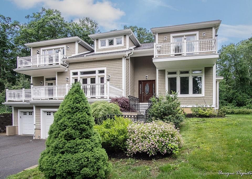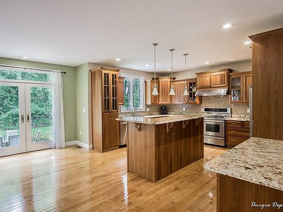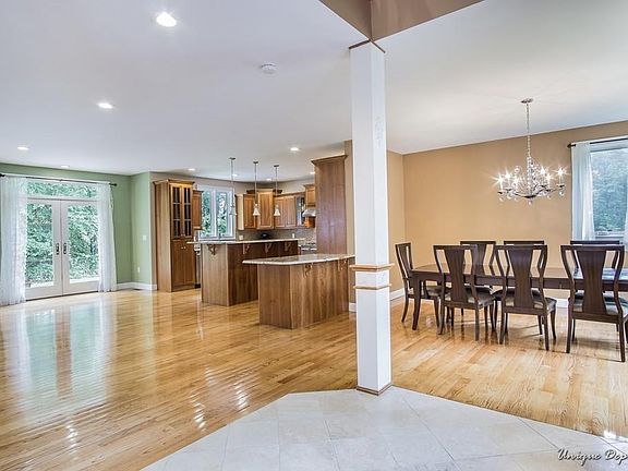 Looking for something different than the same old Colonial? Come see this beautiful contemporary with soaring living room and very open floor plan perfect for entertaining. Previously owned by a builder for his personal residence. Eat in kitchen has an abundance of cherry cabinets, Brazilian gold granite counter tops, large center island, stainless steel appliances, opens to the family room with pellet insert and access to private backyard. Two master bedroom suites.One master on the first floor perfect for guests, in law or convenient first floor living. Second floor has balcony overlooking the living room. Second floor master suite has walk-in closet and stunning master bath with Jacuzzi style tub, granite surround, double vanity and large shower. Two additional spacious bedrooms and office area. Main areas and bedrooms all have gleaming hardwood floors. Partially finished lower level with additional 3/4 bath. Three car garage and convenient location near the highway! A must see!