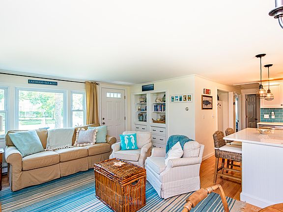 Renovated Cape Cottage. While it still boasts original hard wood floors and built ins some major big ticket items have been tastefully updated. A complete kitchen overhaul with quartz counter-tops, high end cabinetry, recessed lighting, white enameled apron front sink, gas range and new stainless steel appliances have been added. Sea glass aqua backsplash adds a fabulous beachy pop of color to the white surround. New roof was added recently, windows have been replaced, nice front entry step and insulated door added for curb appeal and energy efficiency, electric and plumbing systems have both been updated. The main footprint of the home has two first level bedrooms, a large pantry/laundry area, pull down attic for storage, and open living area with a nice flow between the kitchen, dining and living room. Added to this is a spacious sunroom that doubles as a third bedroom with room for a secondary living space and entry. Outside a sizable deck with room under the sun and stars for dining out and convenient entry to the outdoor shower. A separate shed for storing your bikes and beach gear and the large level corner lot has plenty of yard/garden space. Proximity to Campground Beach, Cooks Brook Beach, National Seashore beaches and visitor's center, Wellfleet drive-in, Wellfleet Audobon Wildlife Sanctuary and bike trail. Half hour drive to Provincetown, 15 minute drive to Wellfleet center/harbor and 10 minute drive to Orleans center.