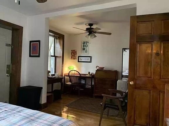 Garden level with private walk-out back deck. 1 bed 1 bath, hardwood floors, renovated kitchen and bath, stainless steel, marble. Cats ok only. Available 5/1 for 12-14 months but maybe flexible with length. First, Last, $1000 Security deposit and realtor fee(one month but negotiable if direct) 12 months beginning 5/1 but also open to 14-16 months gas and electric paid by lessees first, last, 1000, realtor fee required