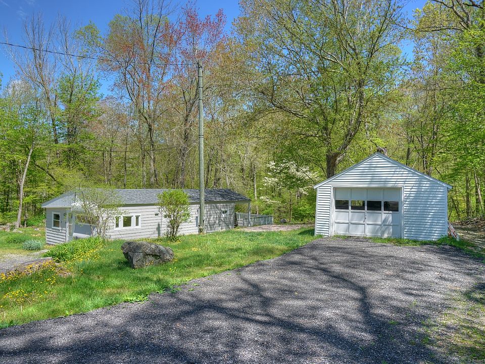 Ranch style home on 1.84 acres with detached garage! Offers 2 bedrooms, an eat-in kitchen, spacious living room with hardwoods, and an office with direct access to large backyard deck. A new roof was added in 2023! Close to I-95 and R.I.'s Misquamicut State Beach is only 30 minutes away. Enjoy the rural charm that North Stonington has to offer along with its beauty and historic value.